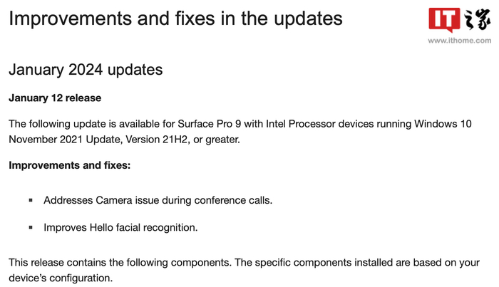 微软 Surface Pro 9 英特尔版获推 1 月固件更新:改进 Windows Hello 识别效果等