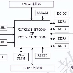 核心板使用的是Xilinx公司的KINTEX-7 FPGA芯片,芯片型号为XC7K325T-2FFG900I/XC7K410T-2FFG900I,二者除片上资源不同外,管脚完全兼容。速度等级为2,温度等级为工业级。此型号为FFG900封装,900个引脚,引脚间距为1.0mm。