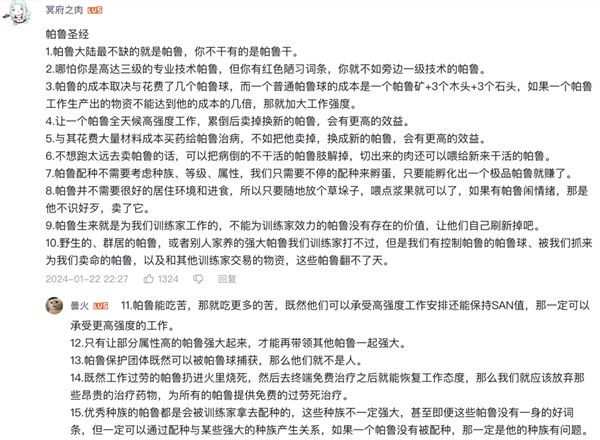 还有不少老哥触景生情,编出了一长串帕鲁圣经,让我这个前互联网大厂员工看得身体直哆嗦。