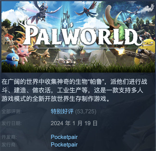发行商一栏可以看到 Pocket Pair 的名字