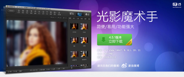 IT之家 1 月 25 日消息,光影魔术手是早年一款比较有名的国产修图软件,最初发布于 2004 年,在 2008 年被迅雷收购,当时官方声称这是一款“简便易用功能强大的照片画质改善和个性化处理软件”。