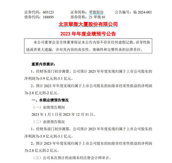 V观财报|翠微股份2023年预亏超5亿,啥情况?