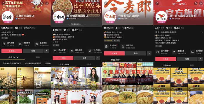 从抖音粉丝数据来看,白象官方大号拥有475.3万粉丝,康师傅速食旗舰店有42.8万,另一个190万粉丝的账号属于康师傅的现金牛饮品。今麦郎130.6万,统一官方仅有12.6万。涌入白象直播间“野性消费”的,是以90后、00后为主力的年轻人,方便面品牌们要想抓住年轻人,还需要在年轻化营销上发力。