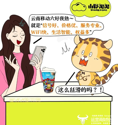 由此,云南移动近期再次派出了社牛“豹豹”,与本土最新锐的当红茶饮品牌“山野泡泡”进行了新一轮整活。