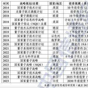 主要国家量子信息产业战略规划与投资概况