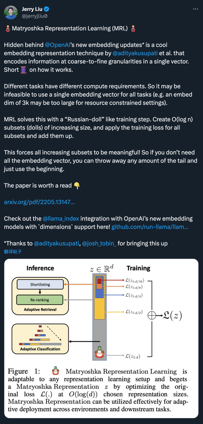 人们发现,这种方法和 2022 年 5 月的一篇论文所提出的「Matryoshka Representation Learning」方法是相同的。