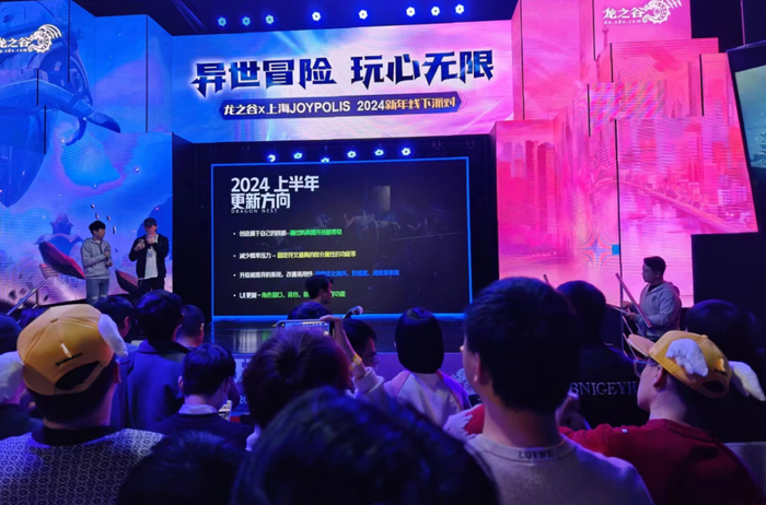 李敬男在台上介绍着游戏2024年的更新计划,台下一位玩家则向我讲述着他在十多年前与这款网游的初见:“我那时候就真是小学生,也不会玩,就做做任务看看剧情,到处乱逛乱砍,就觉得这游戏太牛逼了!”