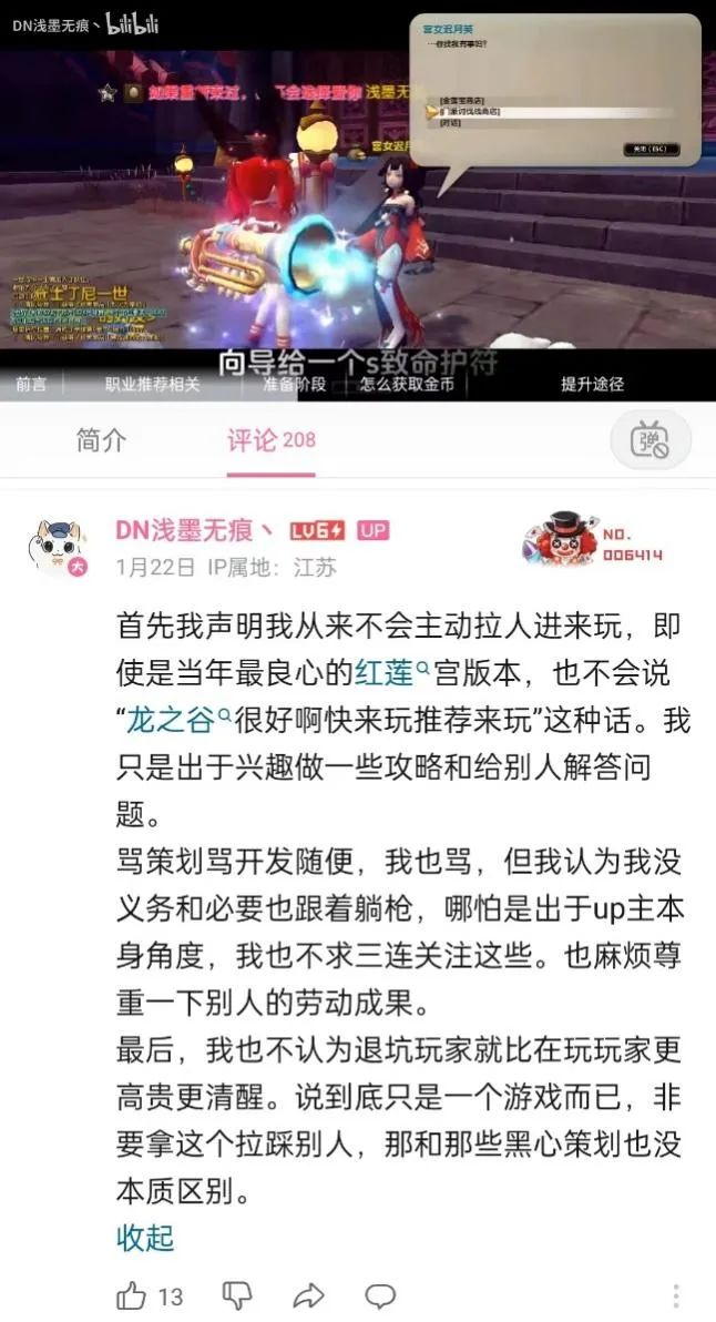 这也让我想起此前在B站注意到的一位UP主,这位ID为“DN浅墨无痕丶”的玩家至今仍在坚持制作《龙之谷》相关的攻略视频,包括面向新人的入谷指南,内容相当详尽。
