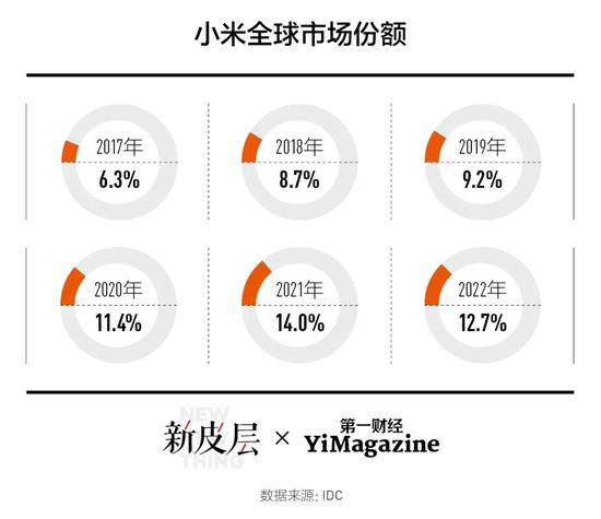 小米在中国智能手机市场的份额从2016年的8.9%一路攀升至2021年的15.8%,但自2022年1季度开始,小米的出货量和份额都开始回落。