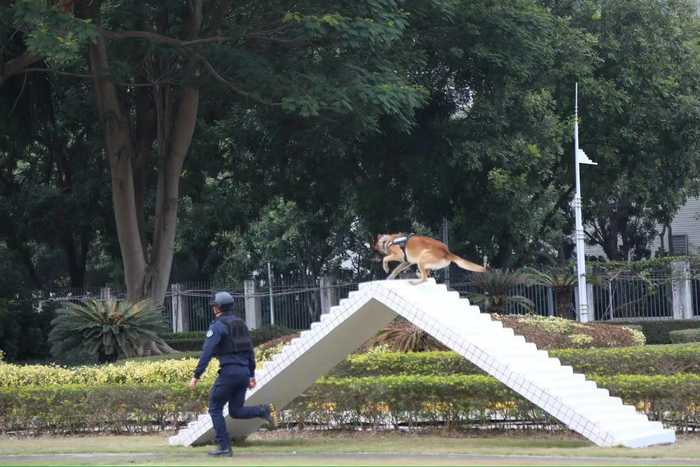 这是2024年1月28日,在深圳市公安局刑警支队警犬训练基地,红星新闻记者看到的真实演练场景,这也是深圳市公安局2024年常态化警营开放日第一期的展示场景之一。