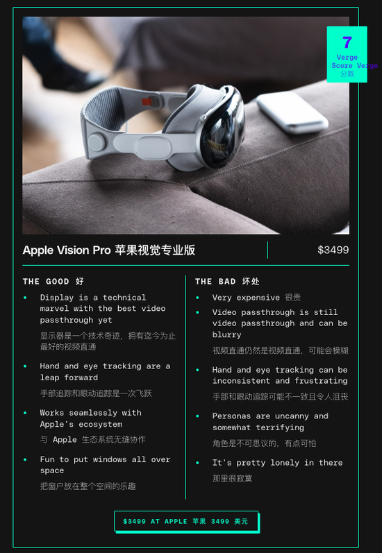 但 The Verge 在测评中给 Vision Pro 明确定性: