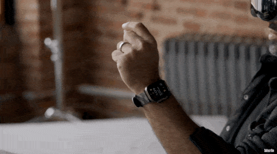其他头显设备一般都需要把手放在屏幕前方,才能操作画面中的信息,而 Vision Pro 可以用最自然的姿势发出手部指令,哪怕把手放在腿上目视前方,都能轻松实现 Optic ID 的交互。