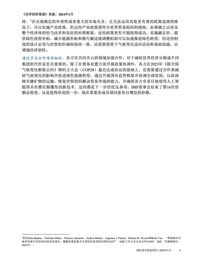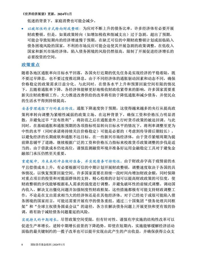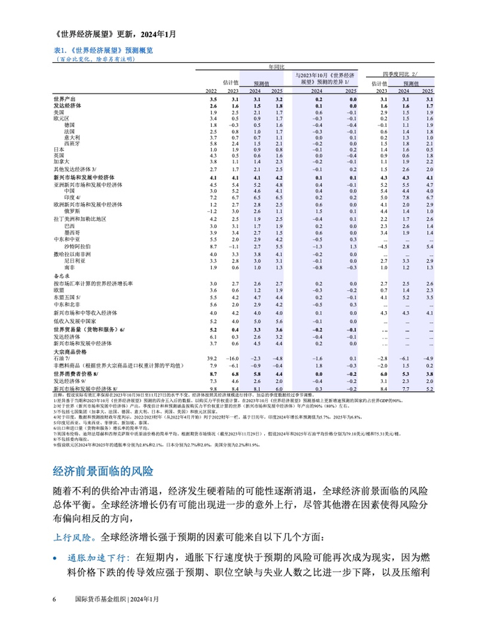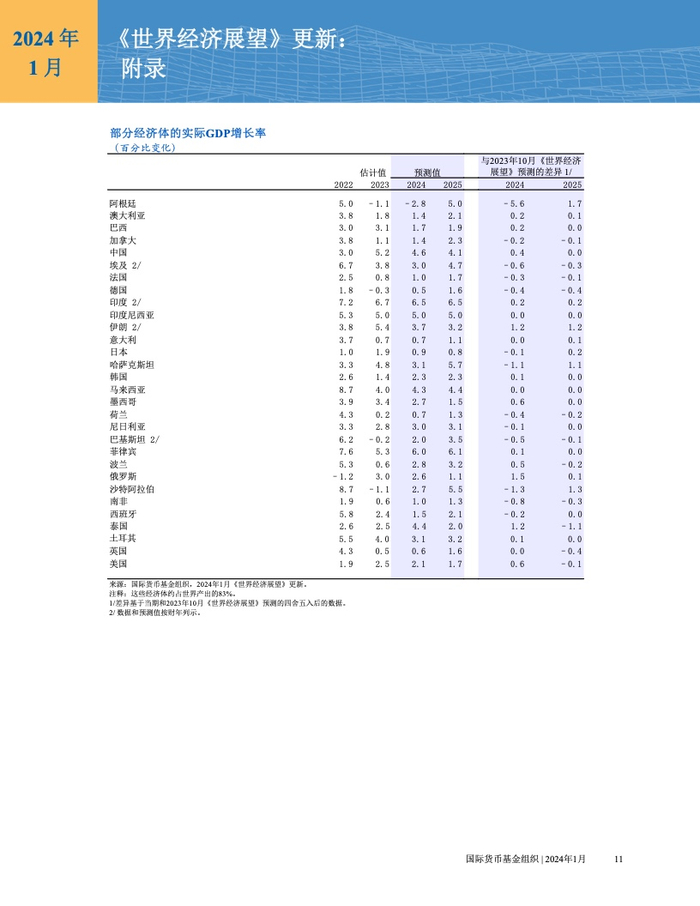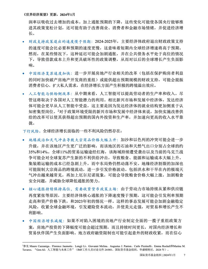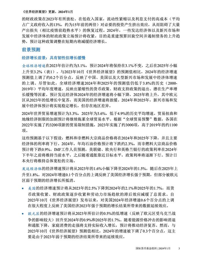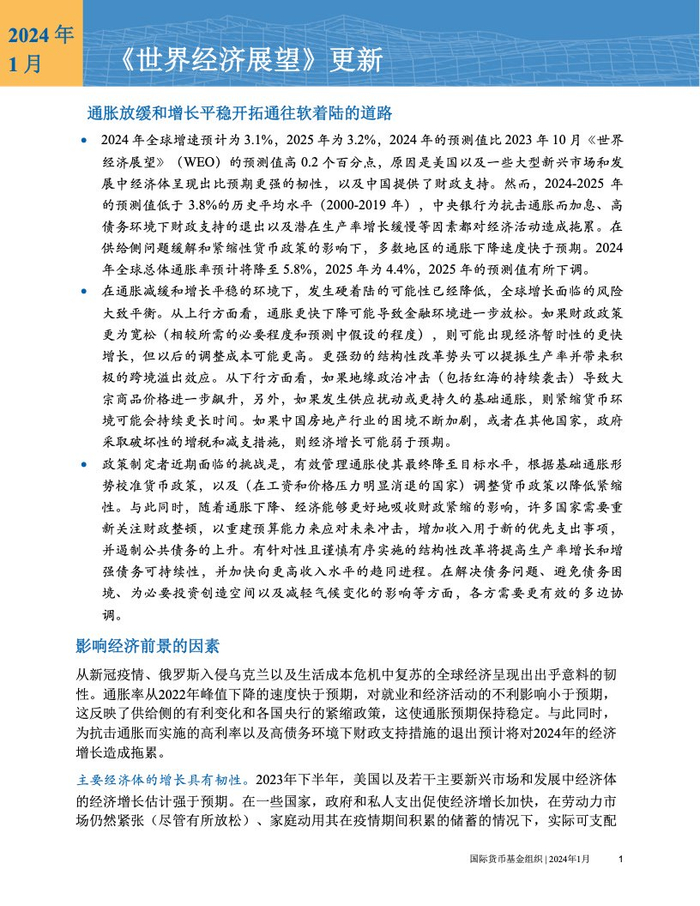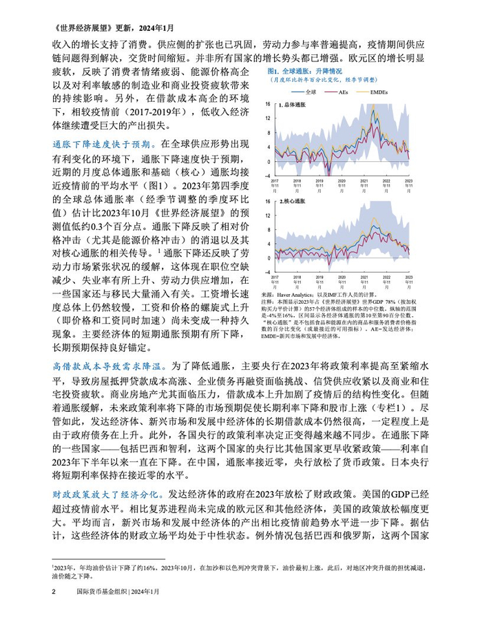 IMF:2024年1月世界经济展望