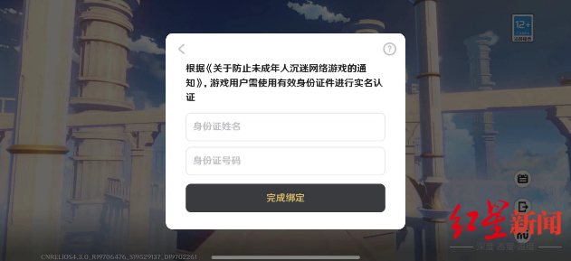 红星新闻记者分别下载了上述6款游戏。其中,网易旗下的《蛋仔派对》《梦幻西游》与米哈游旗下的《原神 》《崩坏•星穹铁道》,在记者输入手机号并接收验证码后,会弹出实名认证对话框。记者输入自己的身份证信息后,即可进入游戏。而腾讯旗下的《王者荣耀》《元梦之星》两款游戏,记者以一个没有实名认证的微信账号登录,登录后也弹出实名认证对话框,同样在输入记者身份证上的信息后,即可正常游戏。