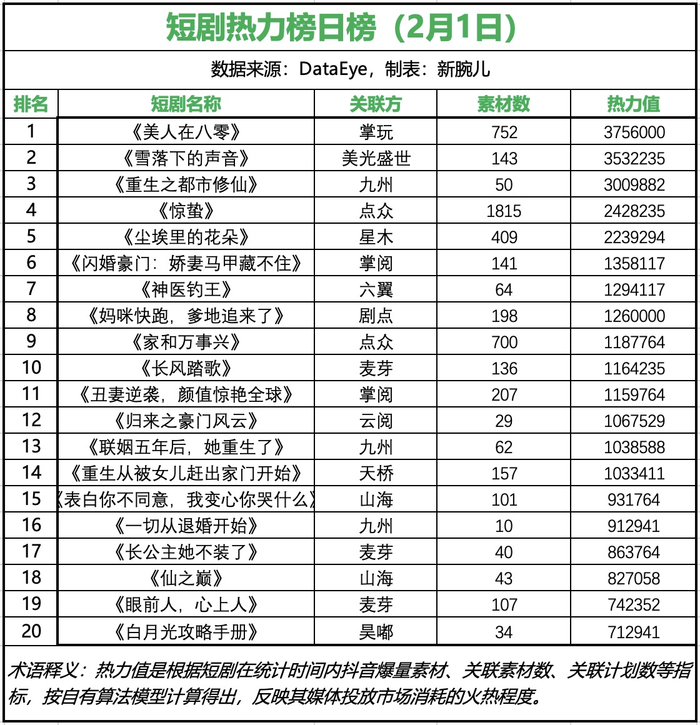 编者按:为帮助从业者提供更多信息,专注于短剧报道的新腕儿和科技媒体鞭牛士联合ADXray共同推出短剧消耗日榜和投流日榜。