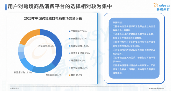 易观发布2023年跨境电商观察,天猫国际市场份额占比37.6%