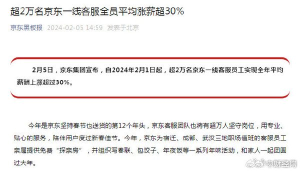东子靠谱!京东宣布2024年一线客服员工涨薪超30%