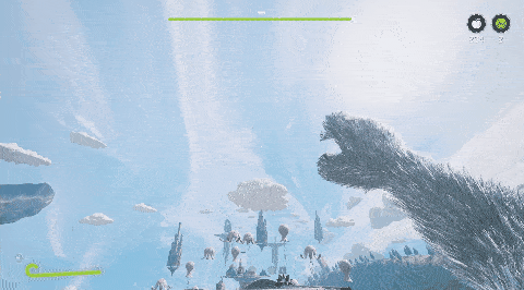 前两个关卡的小游戏是“滑”,天空中布满了糖果色的轨道,而P-3要沿着轨道一路滑过去,靠着浮空岛屿落脚,一路滑墙滑到终点。通过快速转动视角,P-3能够瞬间加速,飞跃糖果轨道之间的天堑。