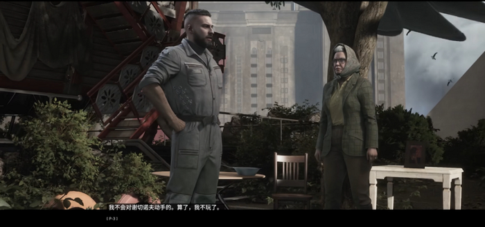 在DLC1的结尾,P-3又一次解决了科研综合体的危机,向谢切诺夫博士申请了无限期休假。而在DLC2的世界线,找回记忆的P-3跟灵薄域里的卡佳立下Flag,不光答应以后会少骂人,在彻底解决事件后,还要跟卡佳一起去休假。
