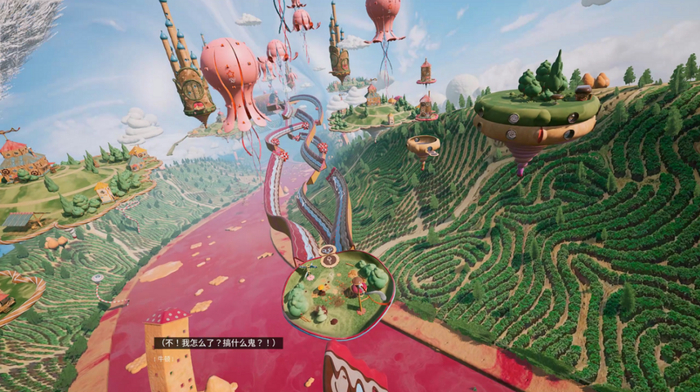 糖果、饼干、蛋糕、巧克力、积木、玩具房屋、骨头架子、研究设施,在蓝天白云与草莓果酱河流的映衬下,共同组成了我眼前光怪陆离的多彩世界。