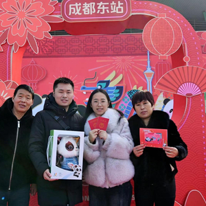 成都发布联合成华区政府、市政府火车站地区管委会办公室正在这里开展除夕“温暖瞬间”活动,现场设置了“幸福驿站”进行温暖互动。在“除夕全家福”区,活动邀请专业摄影机构为旅客免费拍摄全家福,现场打印照片并送给旅客留作纪念;新年送你好兆“头”,免费提供极具成都特色的新春明信片,让旅客们写下祝福语,投入现场的“熊猫邮局”邮筒,送向全球各地;还有“‘剪’映幸福生活”,中国非物质文化遗产微雕传承人、剪纸传承人李懋为旅客剪纸,定格美好回忆。此外,活动还邀请成都市书法家协会副秘书长张学勇在现场为旅客挥毫泼墨,写春联、送祝福。