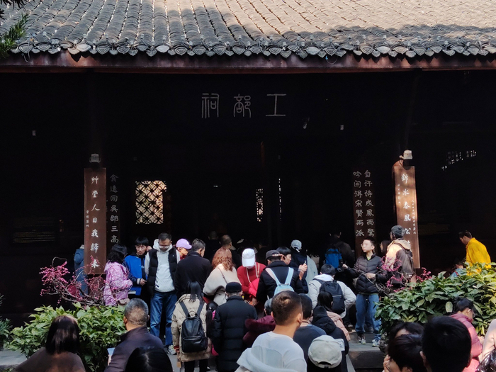 此外,杜甫草堂还推出了多种多样的非遗互动体验活动。2月10日-16日(正月初一至正月初七)期间,在杜甫草堂文创馆和艺术中心内专门设置了文创体验空间,编中国结、做糖画、吹糖人、印祈福年画……亲自动手制作独属自己的草堂春节记忆。