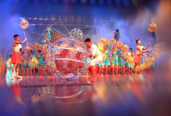 同时,他还精心设计了滚灯的外包装,选择用金黄色的镭射纸包裹大滚灯,用银白色的镭射纸包裹中滚灯,这样既能让滚灯反射舞台灯光,使得表演绚烂夺目,也能增加滚灯的使用寿命。