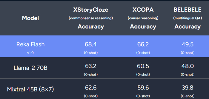 Reka Flash 参数量为 21B,完全从头开始训练,其性能可与更大规模的模型相媲美,在众多语言和视觉基准测试中,Reka Flash 与 Gemini Pro 和 GPT-3.5 具有竞争力。