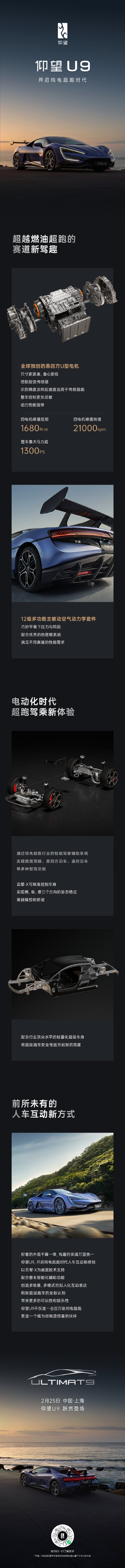 快科技2月18日消息,比亚迪仰望品牌今日公布了旗下首款纯电超跑的更多参数信息。