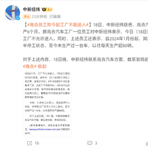停工首日:高合汽车员工称今起工厂不能进入,上月工厂即已进入半停工状态