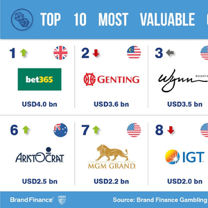 尽管品牌价值略有下降,博彩巨头Bet365超越云顶,成为全球最有价值的博彩品牌