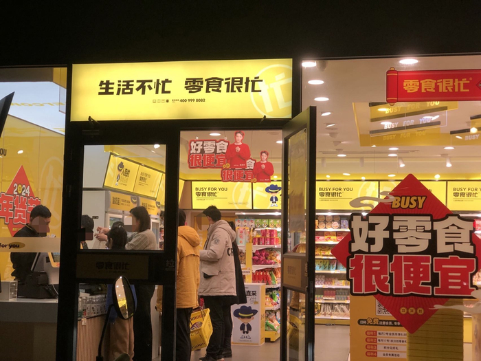 湖南省某县城零食很忙的的门店,时代财经摄于2024年2月。