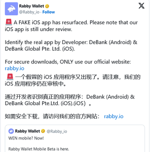 IT之家 2 月 20 日消息,继“LassPass”假冒应用和盗版媒体的假冒应用之后,苹果 App Store 标榜的安全性再次受到考验。报道称一款假冒的 Rabby 钱包应用已上架 App Store,并成功骗取了至少数千美元。