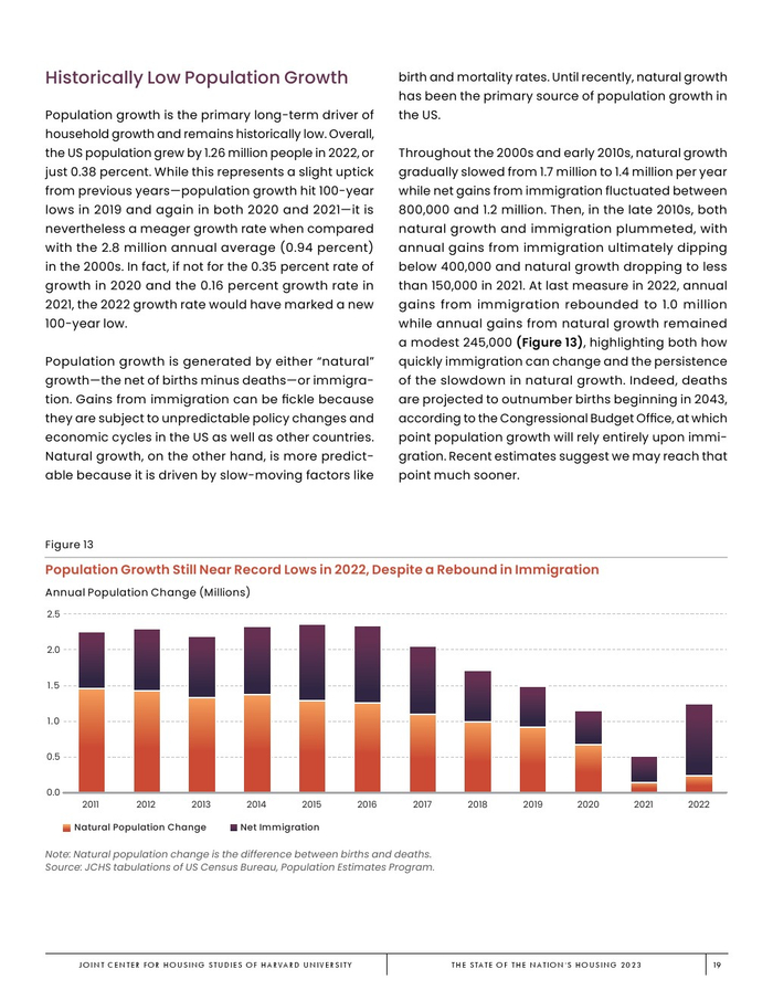 2019 – 2022年,受疫情引发的空间需求、联邦学生贷款暂停支付、各种刺激计划、许多大城市租金暂时下降以及储蓄增加的推动,家庭增长飙升至每年190万户。