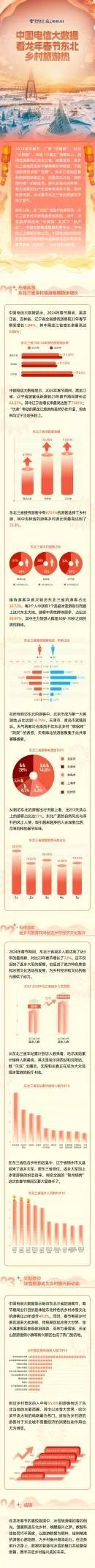 2024龙年春节,广西“砂糖橘”、四川“小熊猫”、云南“小菌主”热情北上,组团式地勇闯大东北三省,受“尔滨”旅游IP热度带动,东北三省乡村文旅热度持续高涨,如今,冰雪旅游将当地“冷资源”变成了“热产业”,中国电信数据发展中心、中电信人工智能科技公司、中国电信研究院战略发展研究所通过电信数据全面展现东北春节期间“旅游热”。