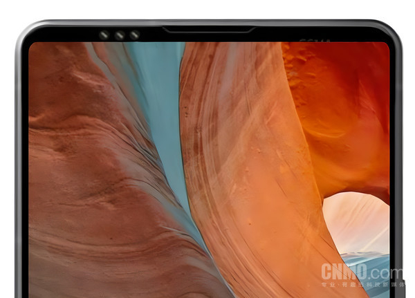 更有趣的是手机的正面设计,如果放大的话,可以看到顶部边框的左侧似乎有三个小相机镜头。