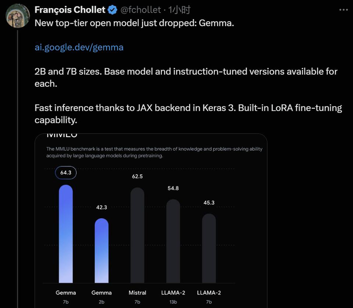 Keras 作者 François Chollet 对此直接表示:最强开源大模型的位置现在易主了。