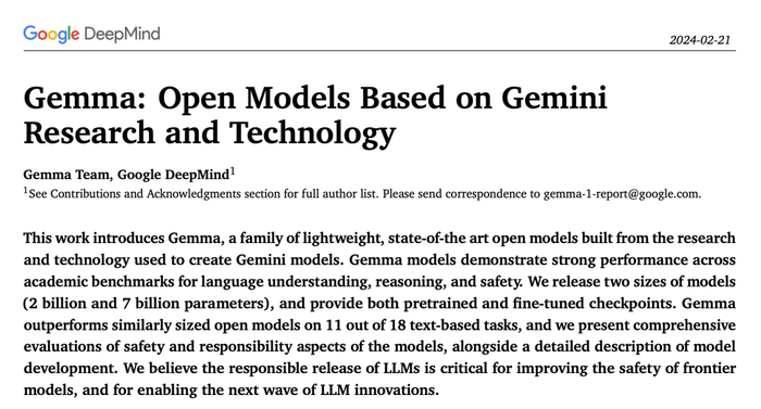 谷歌表示,Gemma 采用了与构建 Gemini 模型相同的研究和技术。不过,Gemma 直接打入开源生态系统的出场方式,与 Gemini 截然不同。谷歌也并未遵守在去年定下的「不再开放核心技术」的策略。