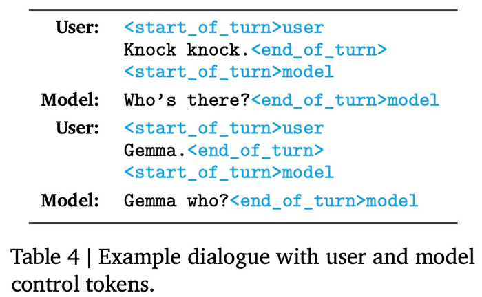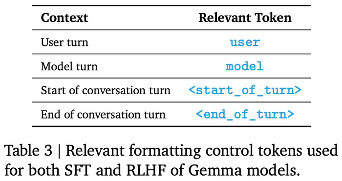 指令调优模型使用特定的格式化器进行训练, 该格式化器在训练和推理时使用额外的信息来标注所有指令调优示例。这样做有以下两个目的,1)指示对话中的角色,比如用户角色;2)描述对话轮次,尤其是在多轮对话中。为了实现这两个目的,谷歌在分词器(tokenizer)中保留了特殊的控制 token。