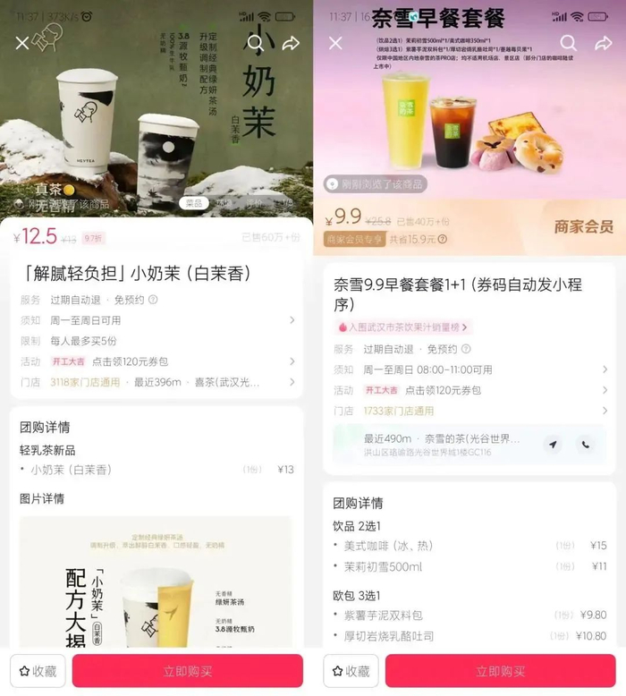 喜茶价格被打到单杯12.5元;奈雪的茶一个欧包+一杯奶茶只9.9元;曾经客单价超30元的老乡鸡也推出了14.9元两菜一饭的套餐;麦当劳、肯德基等西式快餐更是在原有的固定优惠活动上,继续加码,通过直播等形式以1元甚至更低的价格送冰淇淋、麦乐鸡、薯条等小吃......