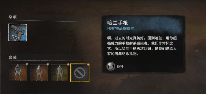 哪怕没有攻略到这个地方,也有机会过过枪瘾。凡是在这段时间登陆游戏的玩家,即可免费领取周年庆礼物:一把由《消光1》的哈兰市生产的手枪”。这把手枪的攻击力相对较低,但在缺乏远程武器可用的剧情前期,算得上弥足珍贵。