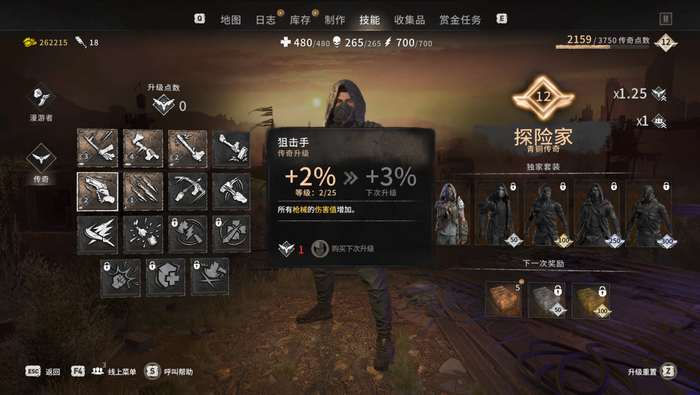 前作中的“传奇”系统也在《消光2》回归。传奇系统等同于一套独立的被动天赋树,在玩家满级后解锁,相当于额外的等级,提供简单粗暴的数值加成。这套系统也是鼓励玩家攻略终局活动,甚至进入多周目的手段之一,因为多周目拥有经验倍率加成,帮助主角艾登朝着维勒多超人的方向渐行渐远。