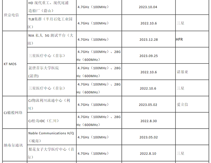 韩国5G专用频率使用近况