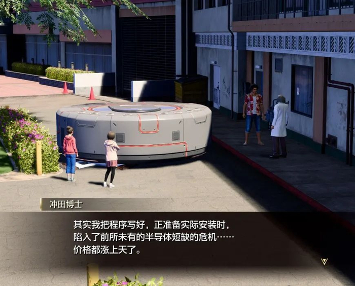 《如龙8》的故事发生在2023年,很多任务都自然而然带上了时代背景:游戏开始后不久,你会通过一个路人的对话了解到“前两年有人囤积口罩和消毒用品”,进而对这个世界感到亲切;如龙7里让你赞助过扫地机器人的那位教授,这次需要你的继续赞助,原因是“他打算加装AI功能,但遇到了半导体短缺,芯片价格涨上天了”(了解科技新闻的朋友都知道是什么时候的事儿)。