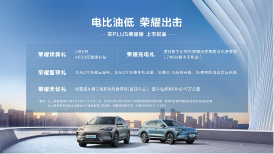 电比油低 海洋双荣耀出击 比亚迪宋PLUS 荣耀版、海豹DM-i荣耀版上市