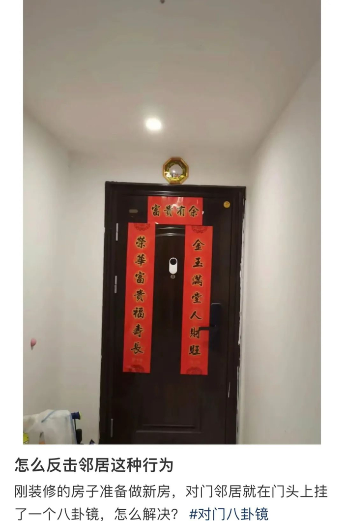 这些起疑的对门邻居本身可能不讲究这个,但看久了心里膈应再所难免。此时再上网一查,矛盾马上升级,就迅速进入到了魔法对轰阶段。