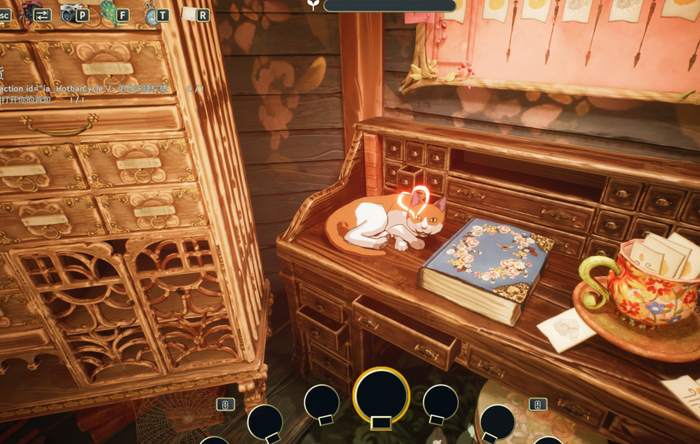 猫咪左侧的大柜子是种花陈列柜,里面存放着所有我们在花圃内找到的普通品种、变异变种,以及成品花插条(从花丛中用园丁剪剪下的花枝),除了便于存放外,也能节省我们的背包空间。
