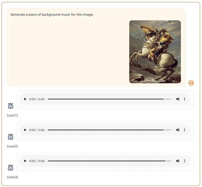 给出文本 + 图像形式的 prompt,AnyGPT 能够按照 prompt 要求生成音乐: