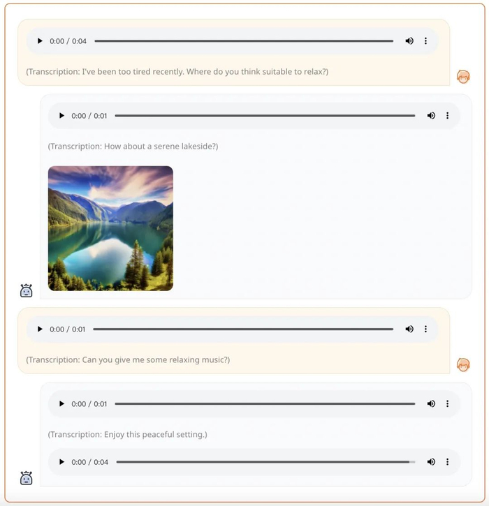 例如给出一段语音 prompt,AnyGPT 能够生成语音、图像、音乐形式的综合响应: