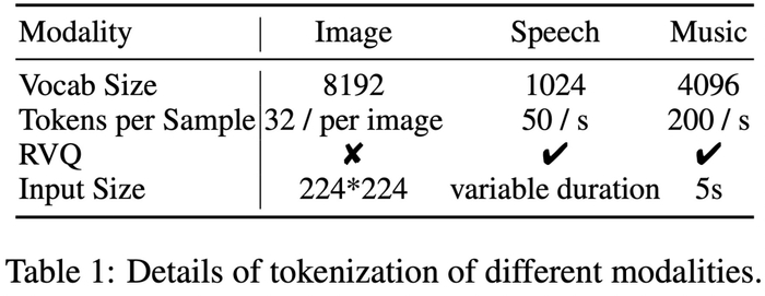 其中,tokenizer 将连续的非文本模态转换为离散的 token,随后将其排列成多模态交错序列。然后,语言模型使用下一个 token 预测训练目标进行训练。在推理过程中,多模态 token 被相关的 de-tokenizer 解码回其原始表征。为了丰富生成的质量,可以部署多模态增强模块来对生成的结果进行后处理,包括语音克隆或图像超分辨率等应用。